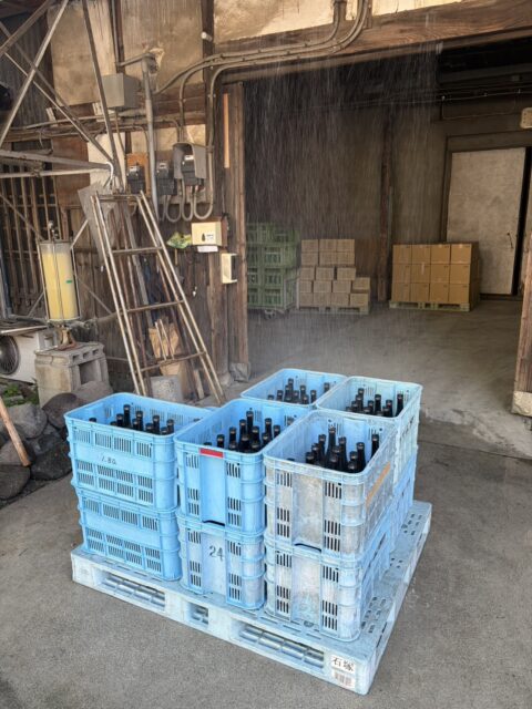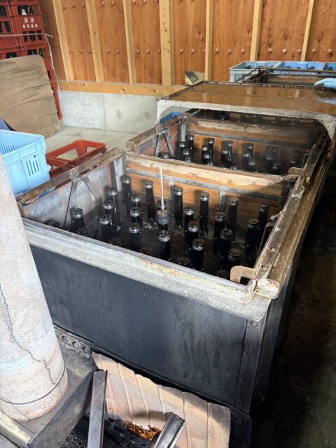 瓶詰めしたお酒は、1本1本熱めのお風呂で火入れをし、11代目DIYの特性シャワーで冷却しています。